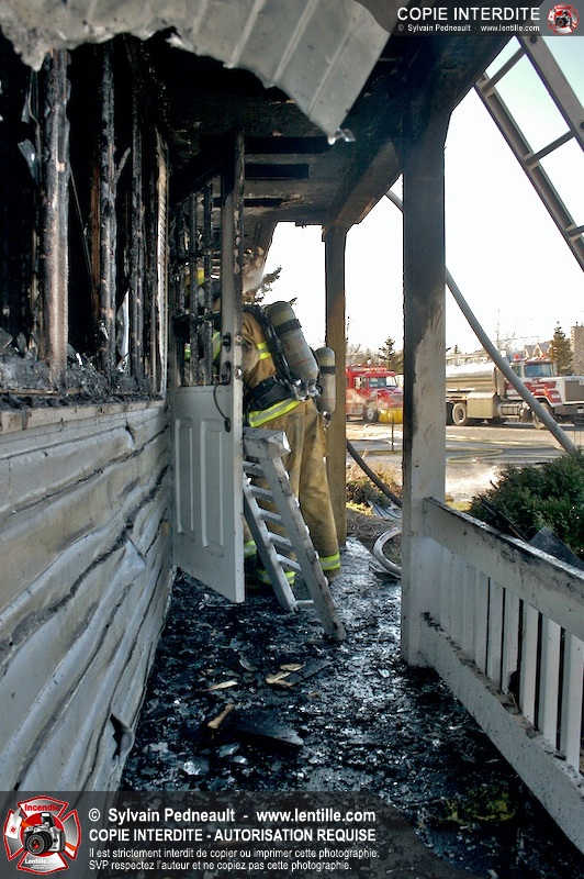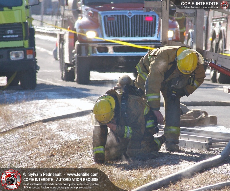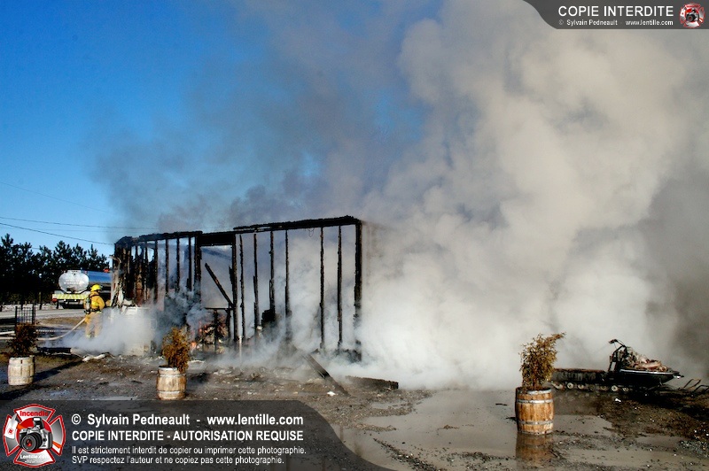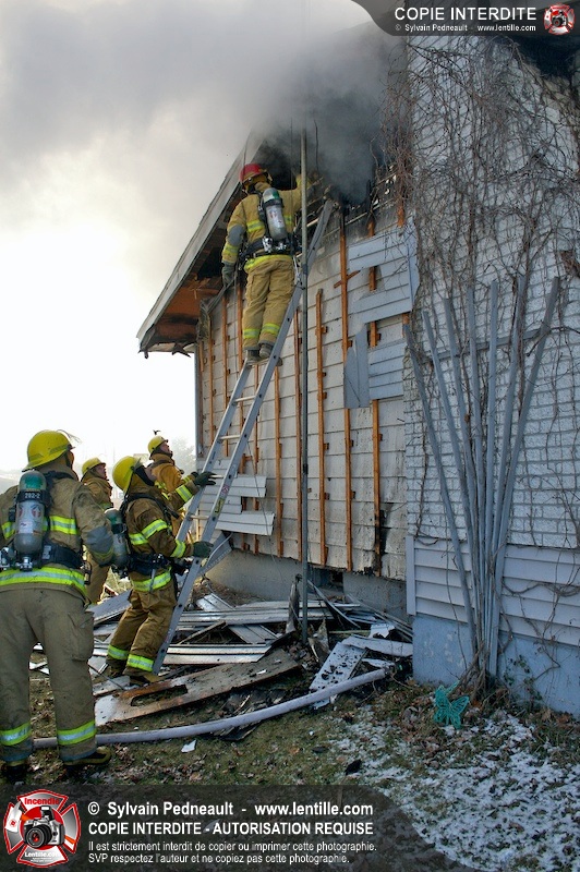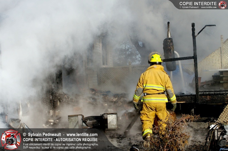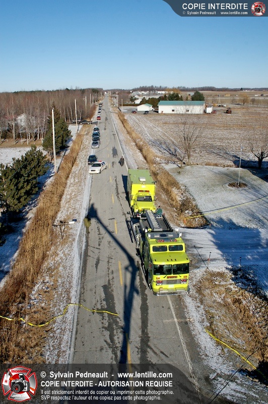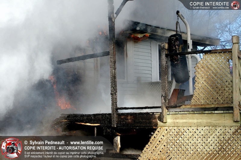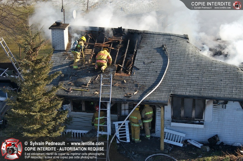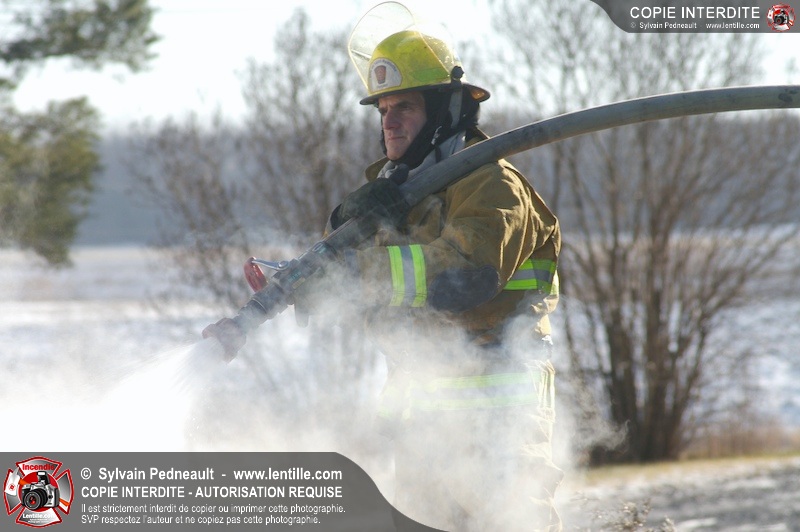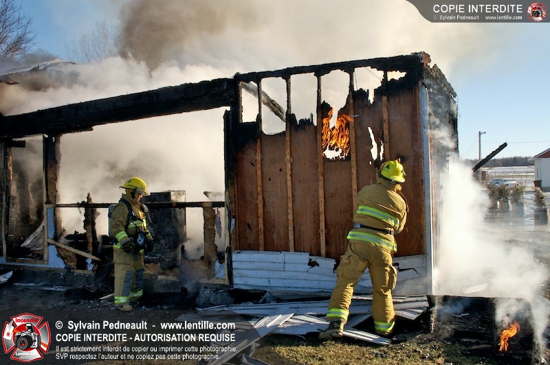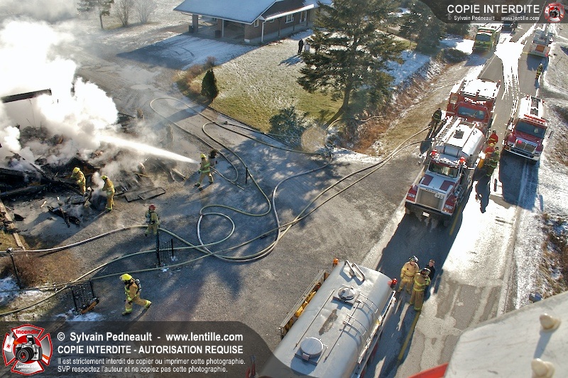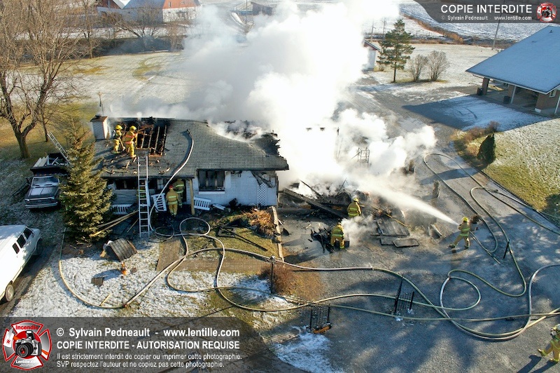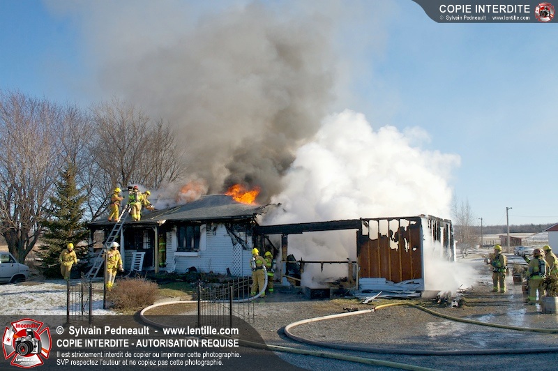 Une résidence du 5e rang est partie en fumée alors que ses propriétaires étaient absents. Les pompiers ont sonné une deuxième alarme pour disposer des secours nécessaires aux opérations. À un certain moment, un retrait stratégique a été ordonné par le chef aux opérations, mais une unité a été redéployée au secteur 1 peu après.