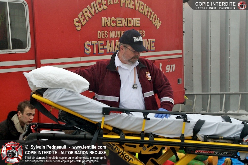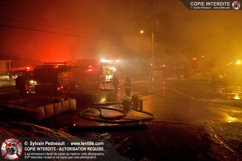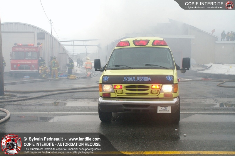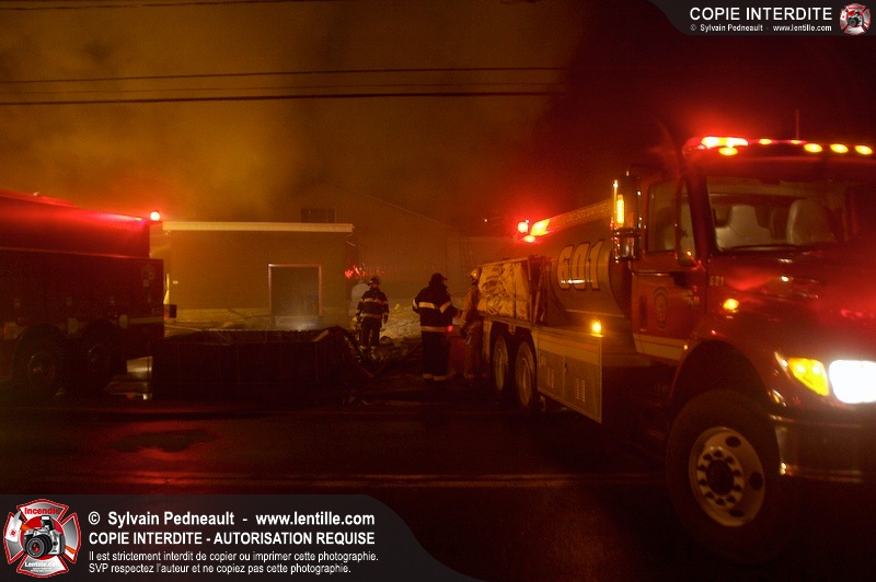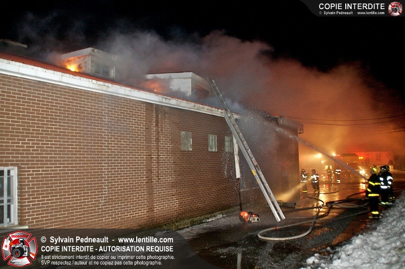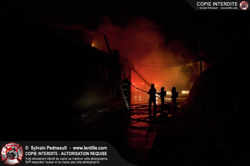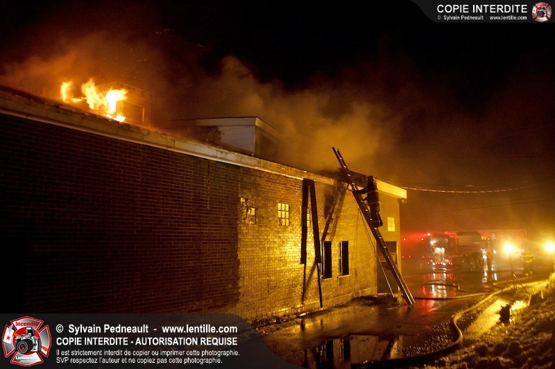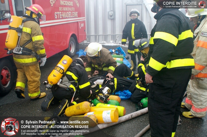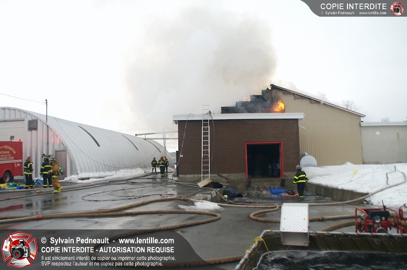 Un incendie a détruit la majeure partie d'une usine sur la route 227. Les pompiers de Ste-Madeleine ont été épaulés par leurs collègues de St-Damase tout au long de l'intervention. Une citerne de St-Damase et une de St-Hyacinthe ont également été appelées en renfort pour l'approvisionnement en eau. Finalement, les paramédics de Saint-Hyacinthe ont été dépêchés sur le site pour transporter un pompier blessé lors d'une chute.