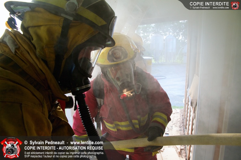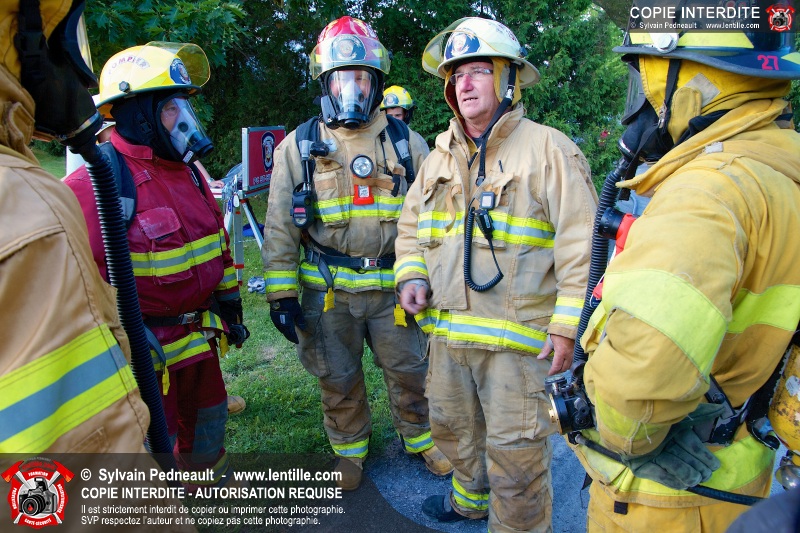 Les pompiers de St-Hugues ont eu la chance de pratiquer des techniques de recherche & sauvetage, ventilation, opérations de protection et autres dans une maison abandonnée. Les pompiers de St-Barnabé-Sud ont également pu profiter de l'occasion en se joignant aux pompiers de St-Hugues en soirée.